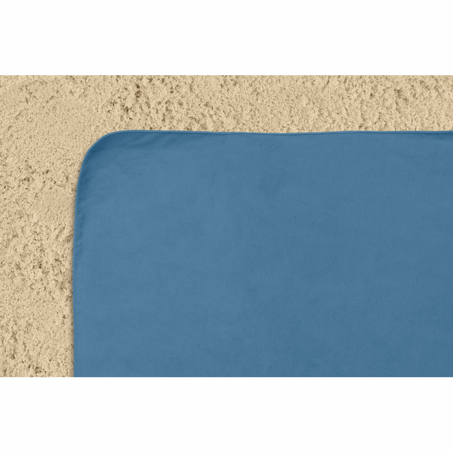 Μαλακή και απορροφητική μπλε πετσέτα μικροϊνών που στεγνώνει εξαιρετικά γρήγορα. Η αίσθηση πολυτέλειας σαμουά την καθιστά ιδανικό σύντροφο στις διακοπές.