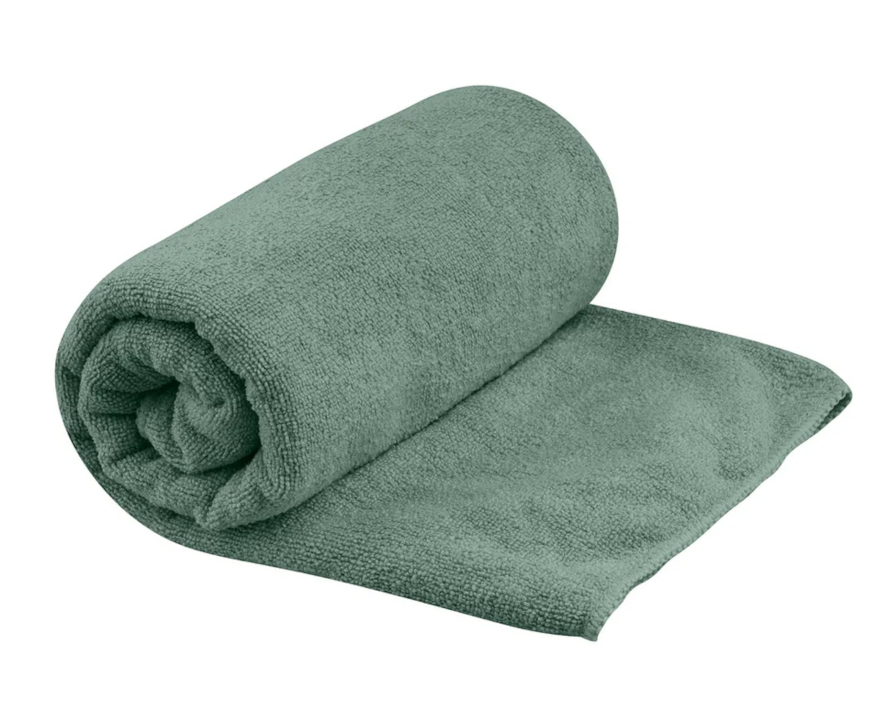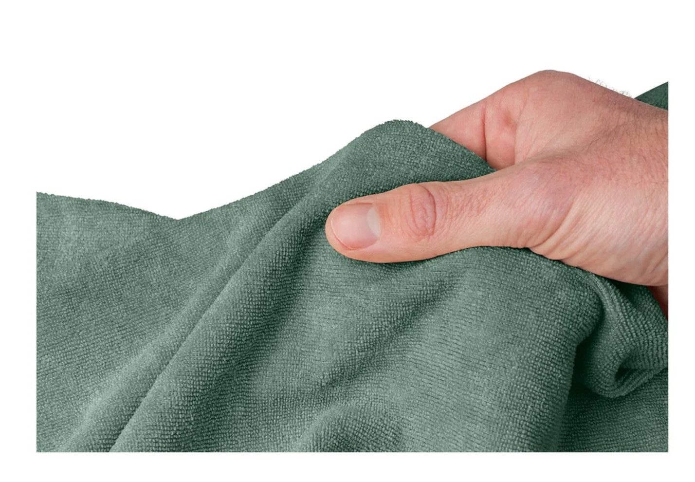 Ελαφριά και εύκολα συσκευάσιμη πράσινη πετσέτα. Απορροφά τρεις φορές το βάρος της σε νερό και στεγνώνει εξαιρετικά γρήγορα. Με απαλή και μεταξένια πλέξη.