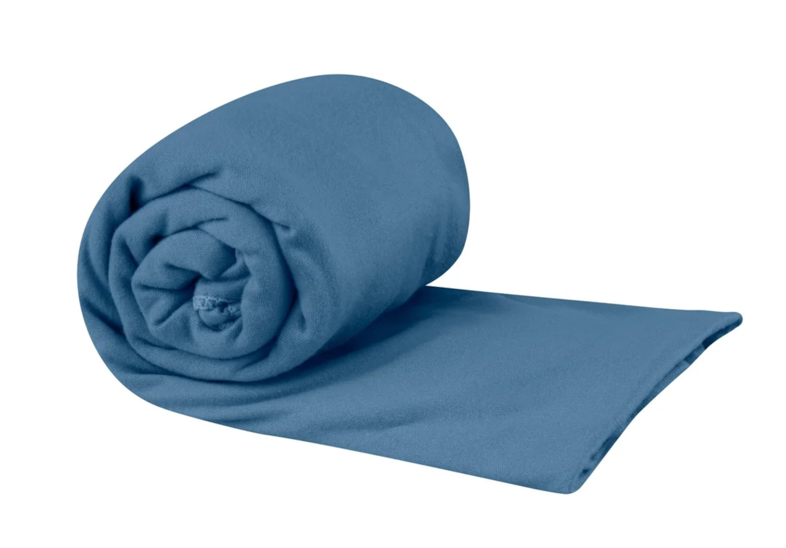 Ελαφριά και εύκολα συσκευάσιμη μπλε πετσέτα. Απορροφά τρεις φορές το βάρος της σε νερό και στεγνώνει εξαιρετικά γρήγορα. Με απαλή και μεταξένια πλέξη.