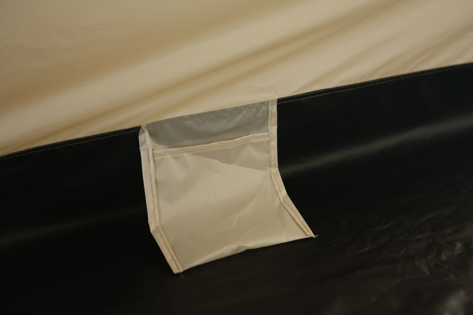 Η σκηνή Inca Cabana ενσωματώνει εξελιγμένα συστήματα εξαερισμού, τα οποία επιτρέπουν την αποτελεσματική ροή του αέρα και αποτρέπουν τη συμπύκνωση στο εσωτερικό της σκηνης. Αυτό το σχεδιαστικό χαρακτηριστικό εξασφαλίζει ένα ευχάριστο περιβάλλον, ακόμη και κατά τη διάρκεια θερμότερων καιρικών συνθηκών ή σε συνθήκες υγρασίας.