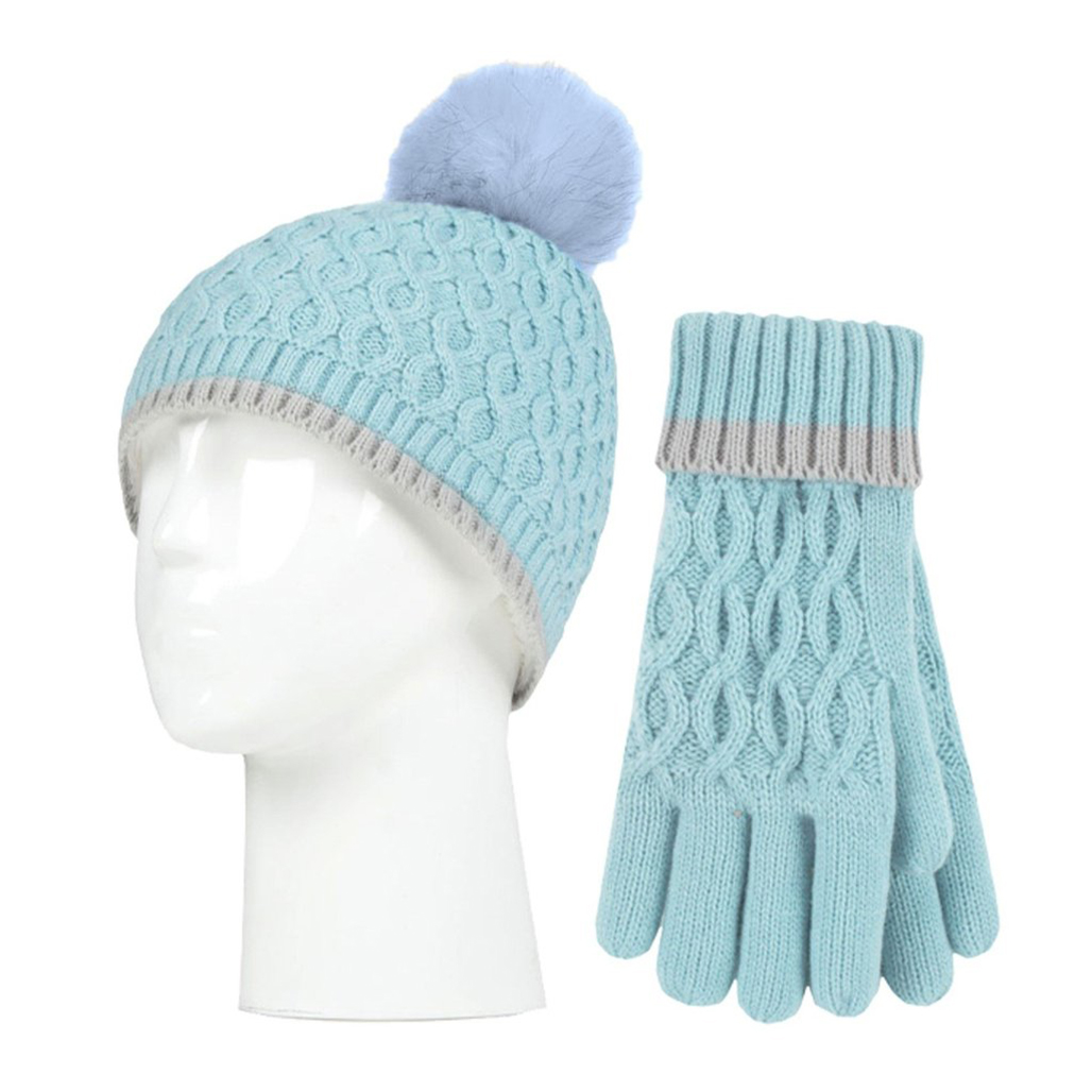 Παιδικό σετ,σκούφος με pom pom και γάντια για παιδία 7-10 ετών