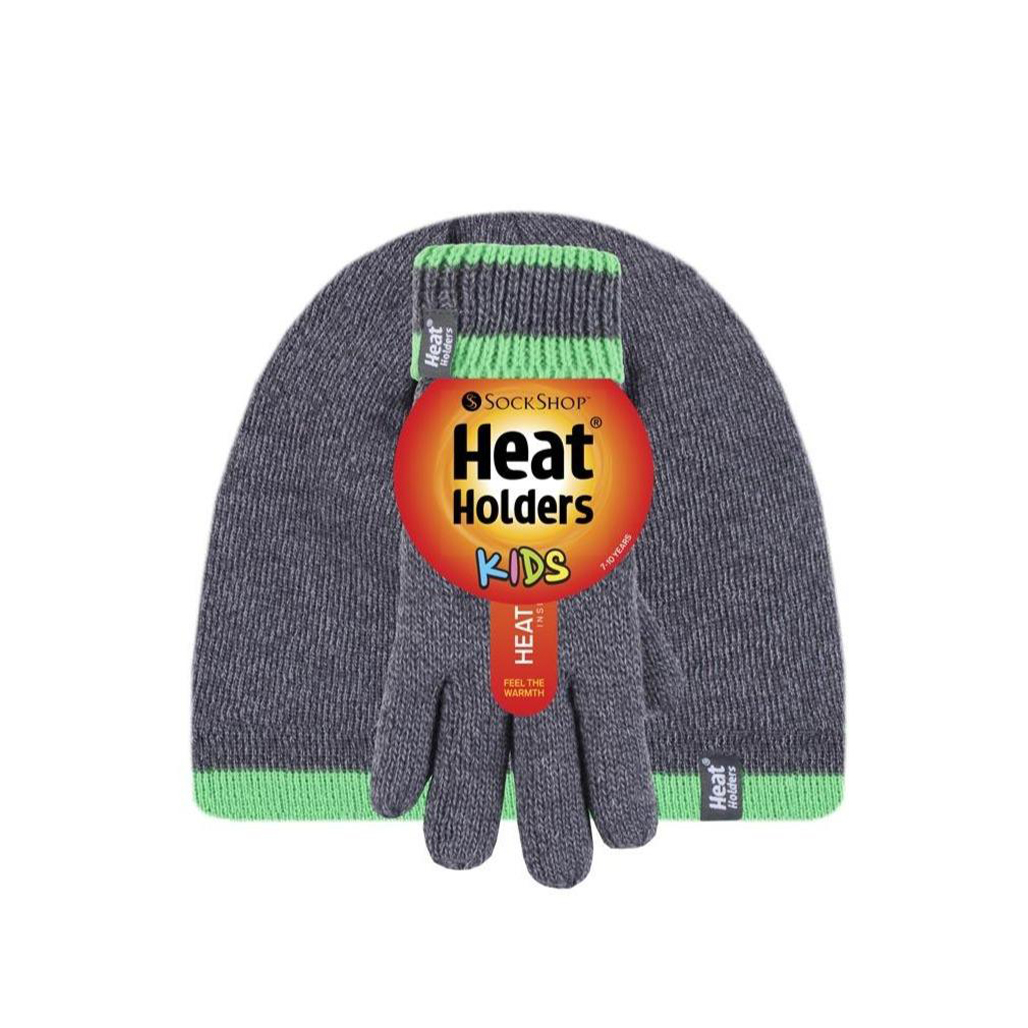 Παιδικό Σετ Σκούφος Και Γάντια Για Παιδία 7-10 Ετών Charcoal/Green Heat Holders 80077
