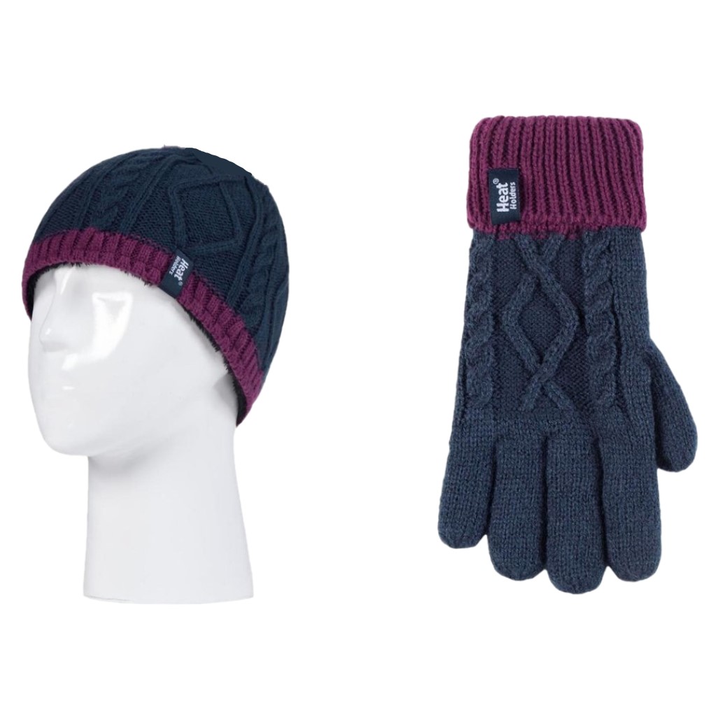 Παιδικό Σετ Σκούφος Και Γάντια Για Παιδία 7-10 Ετών Turn Over Hat & Gloves Navy-Purple Heat Holders 80079