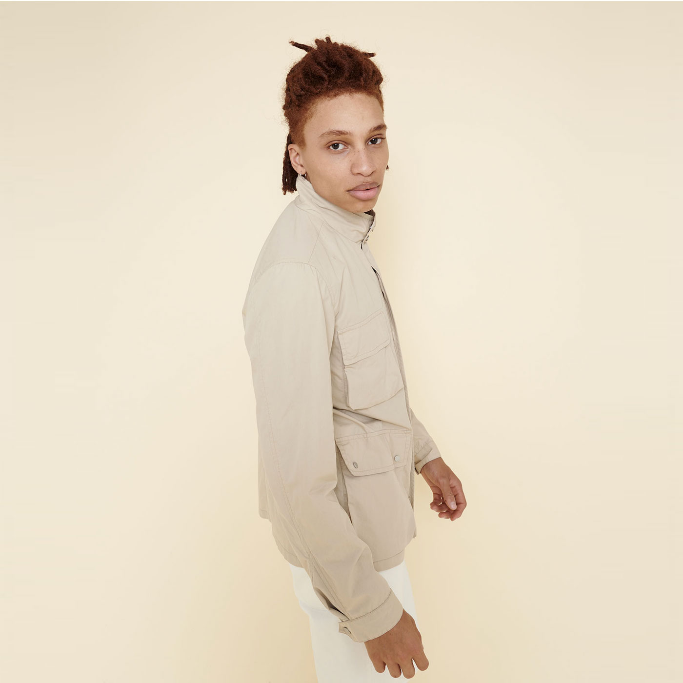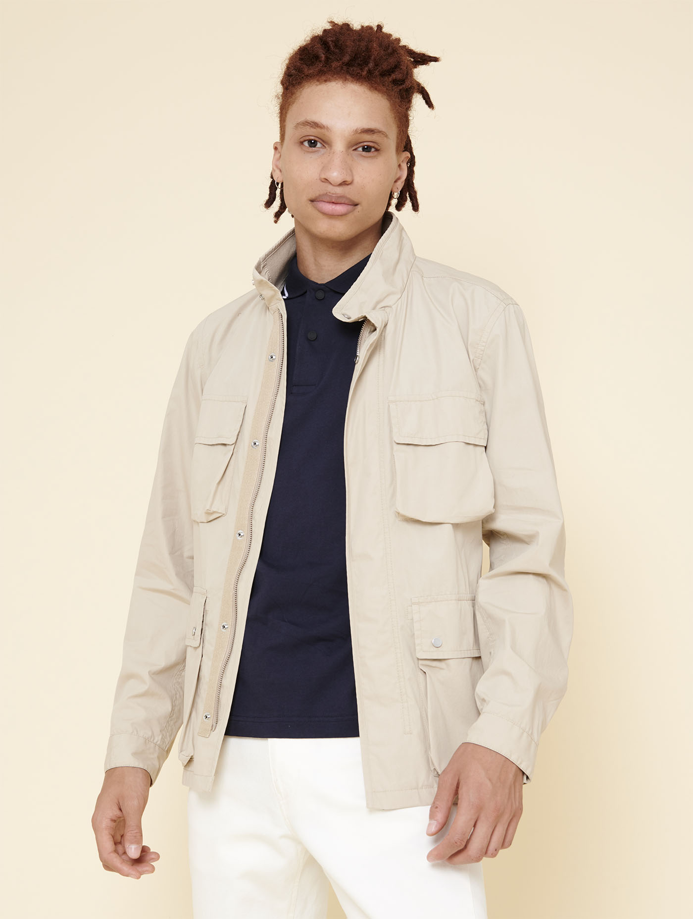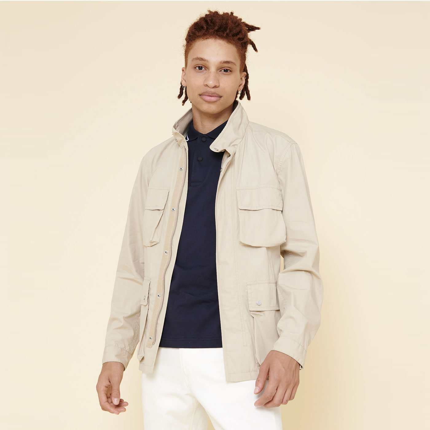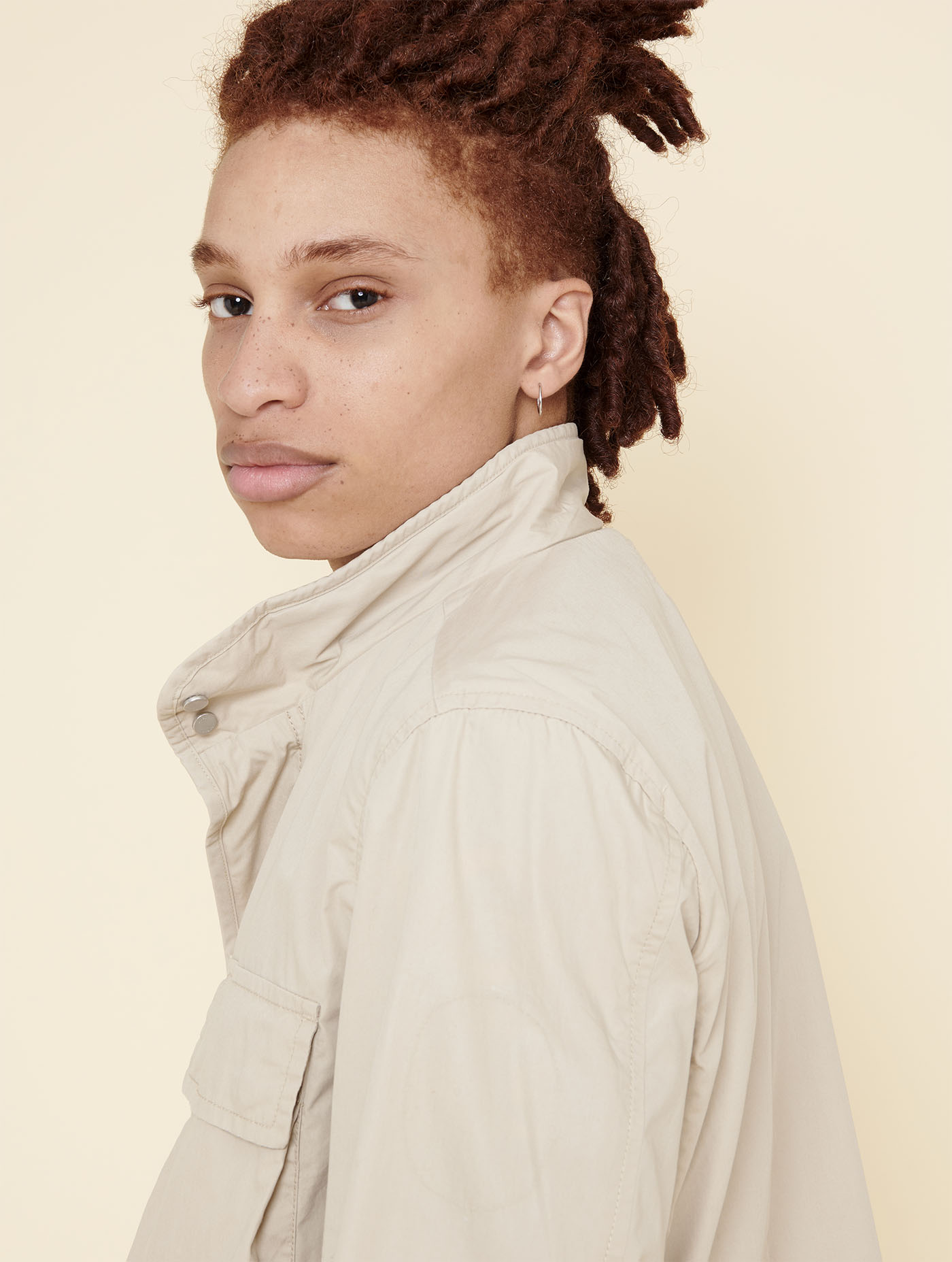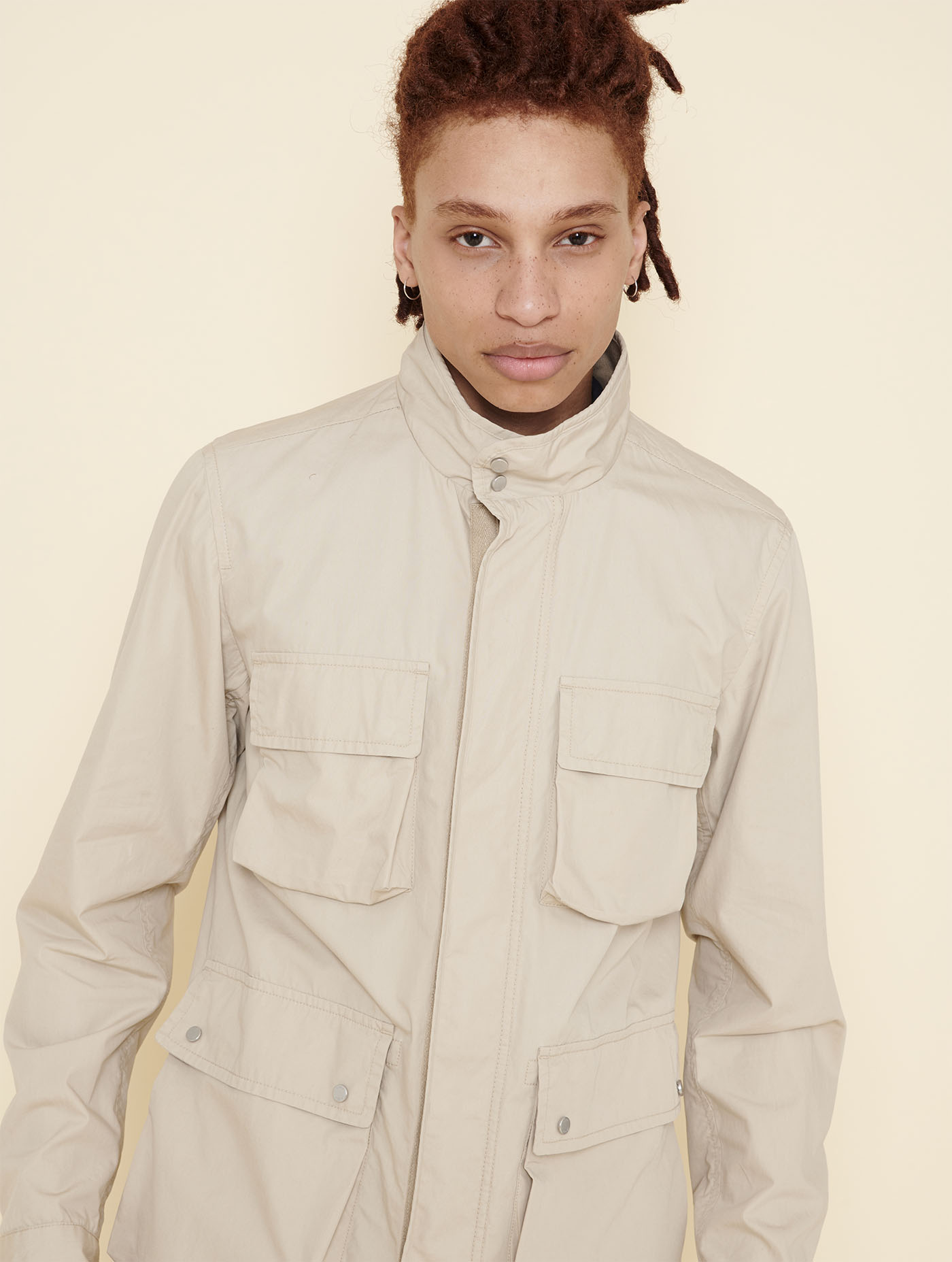 Μπεζ μπουφάν από 100% βαμβάκι, ανθεκτικό και μαλακό.