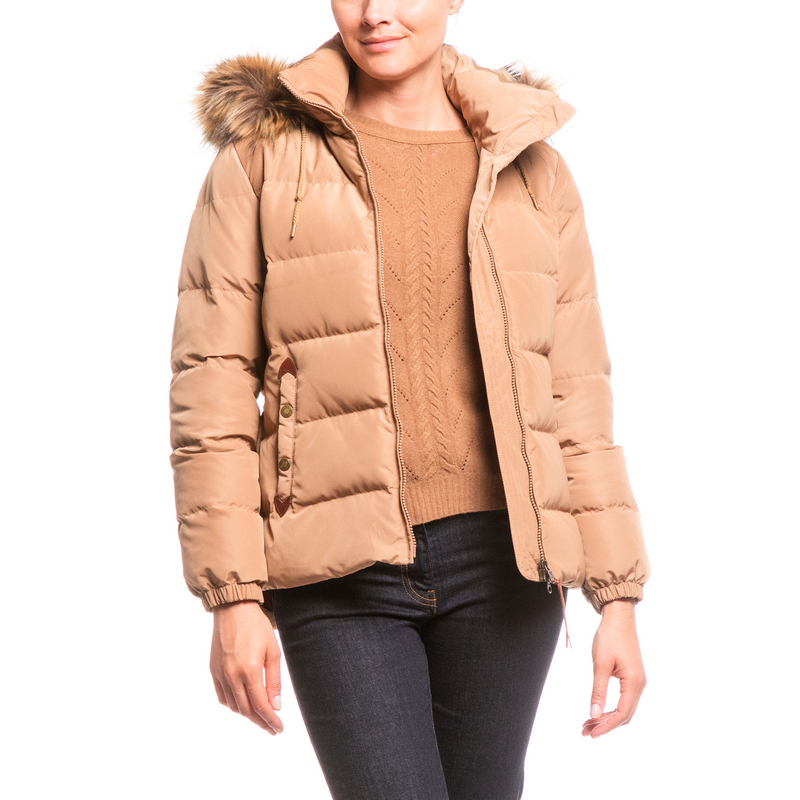 Πολύ ζεστό υδρόφοβο πουπουλένιο μπουφάν. Διαθέτει αποσπώμενη κουκούλα με οικολογική γούνα και δερμάτινες λεπτομέρειες