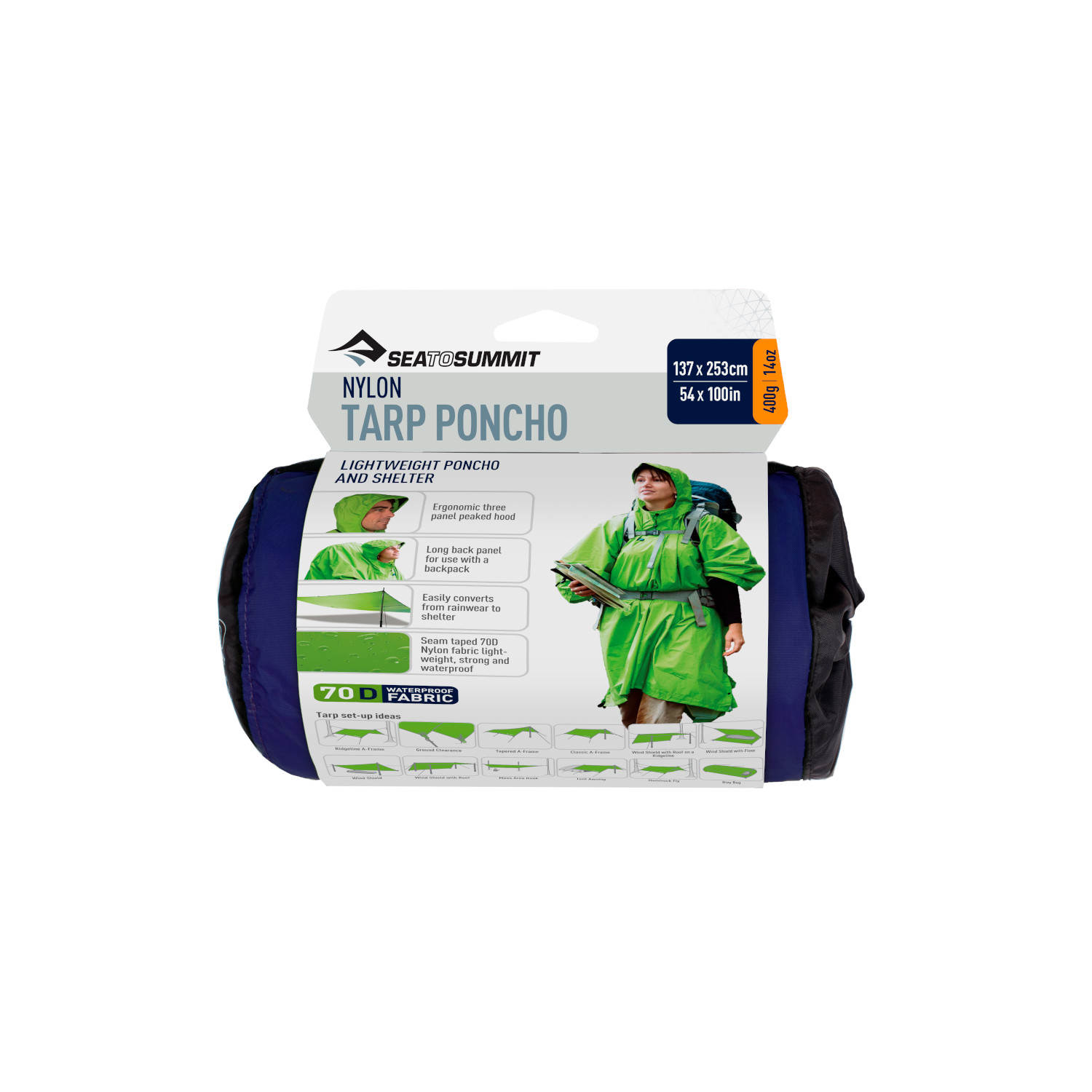 Το Sea to Summit 70D Tarp Poncho είναι ένα πολυλειτουργικό outdoor αξεσουάρ που συνδυάζει αδιάβροχο πόντσο και ελαφρύ καταφύγιο (tarp) σε ένα.