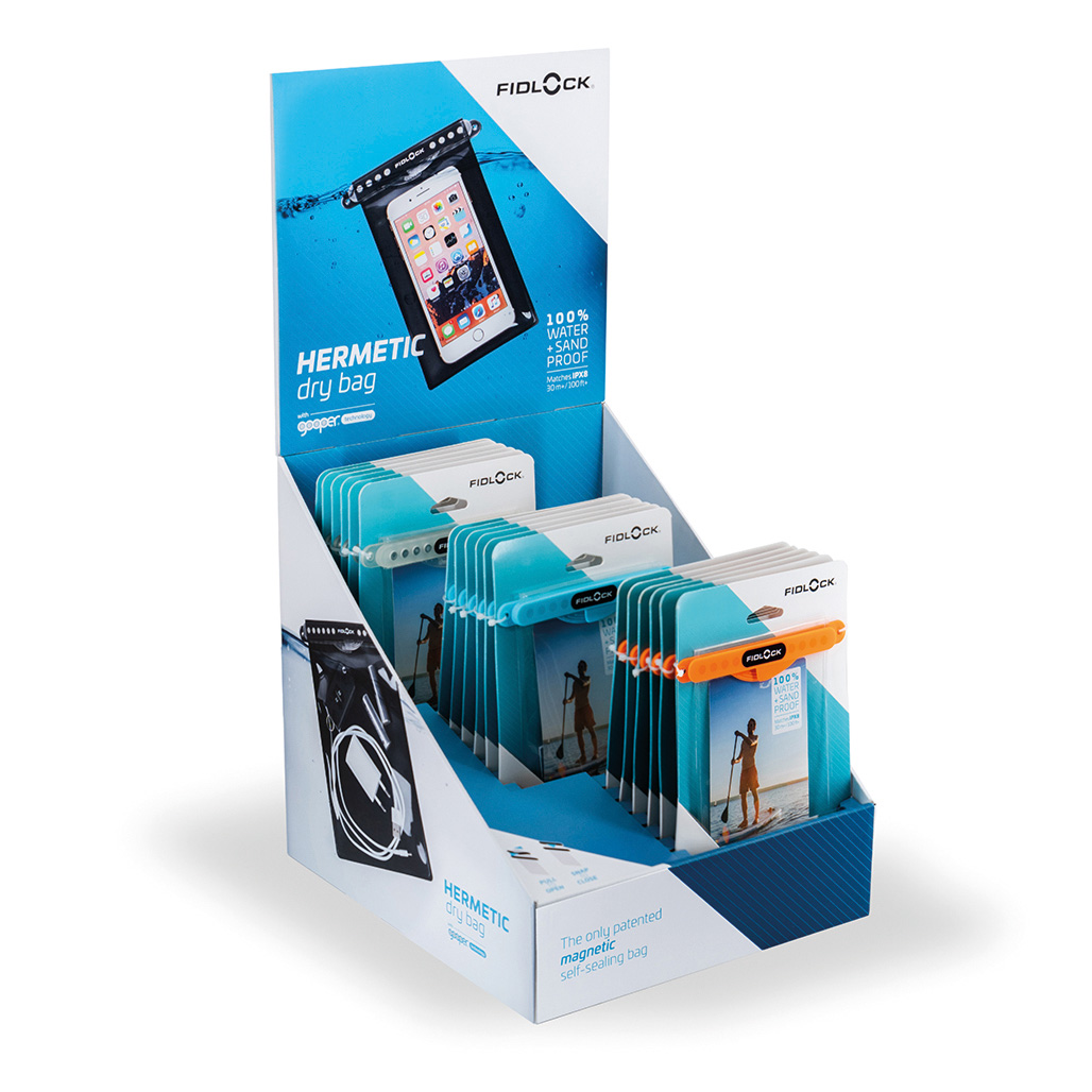 HERMETIC DISPLAY MEDI 18 PCS (6 TRANSP 6 PETROL 6 ORANGE). FIDLOCK 21415